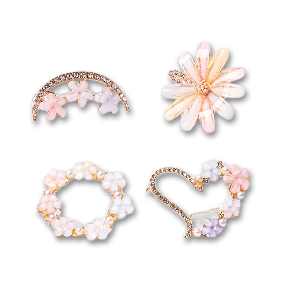 Floral designs are a recurrent motif in Korean accessories, adding a touch of natural elegance to your attire. For instance, the Korean Fashion Hair Clips Pearl Star Flower Hair Clips Cute Hair Clips showcase the perfect blend of sparkling rhinestones with a floral motif, making it a versatile addition to any outfit.