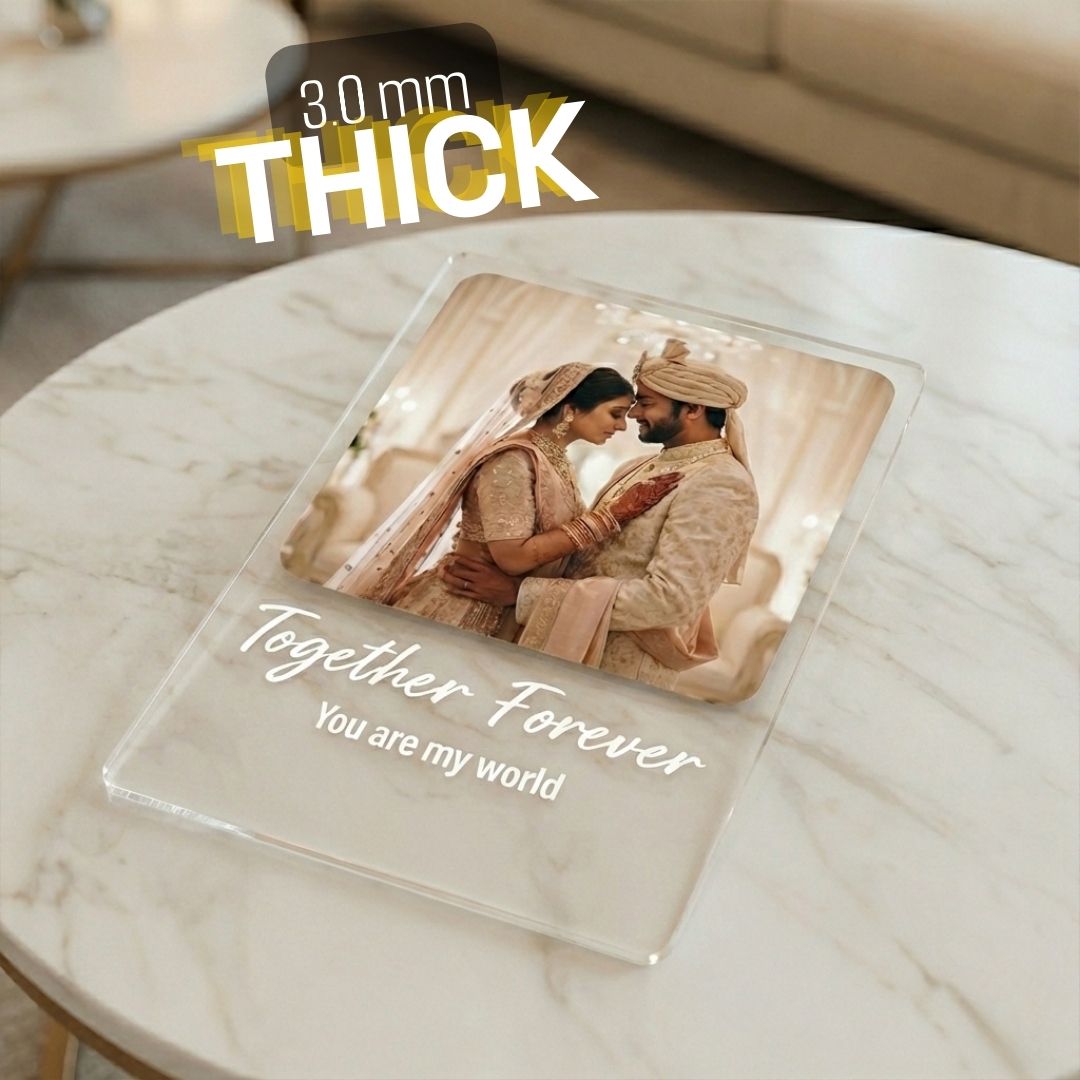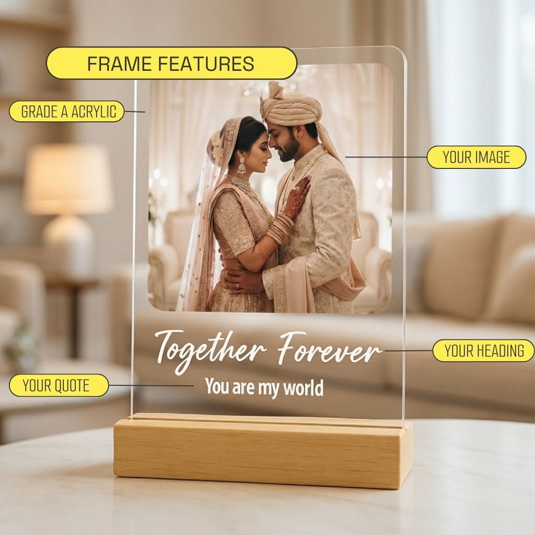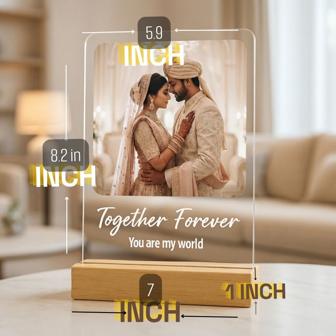 Featuring vibrant photo printing and custom text options like “Together Forever” and “You are my world,” it’s the perfect way to showcase your love in any space.