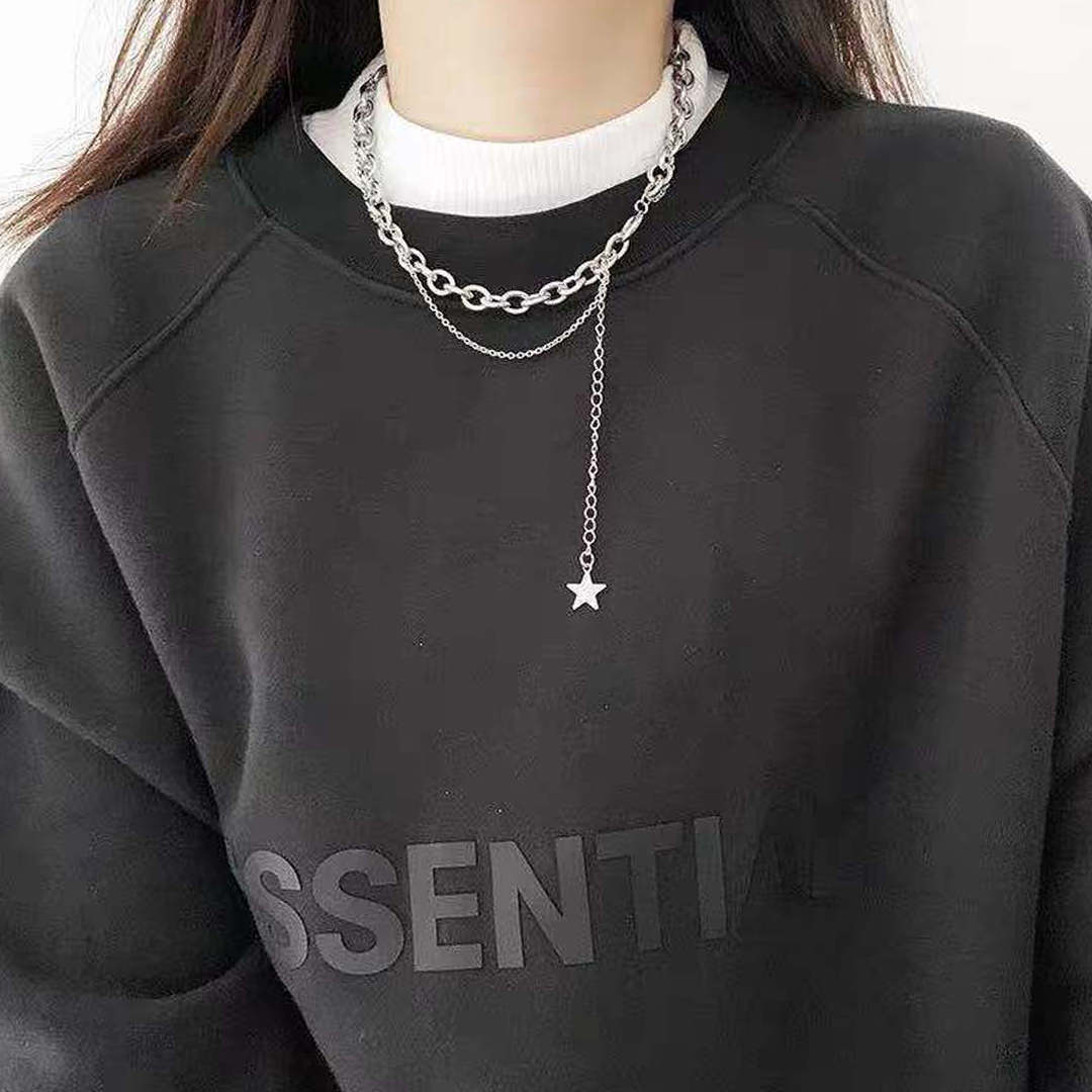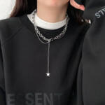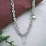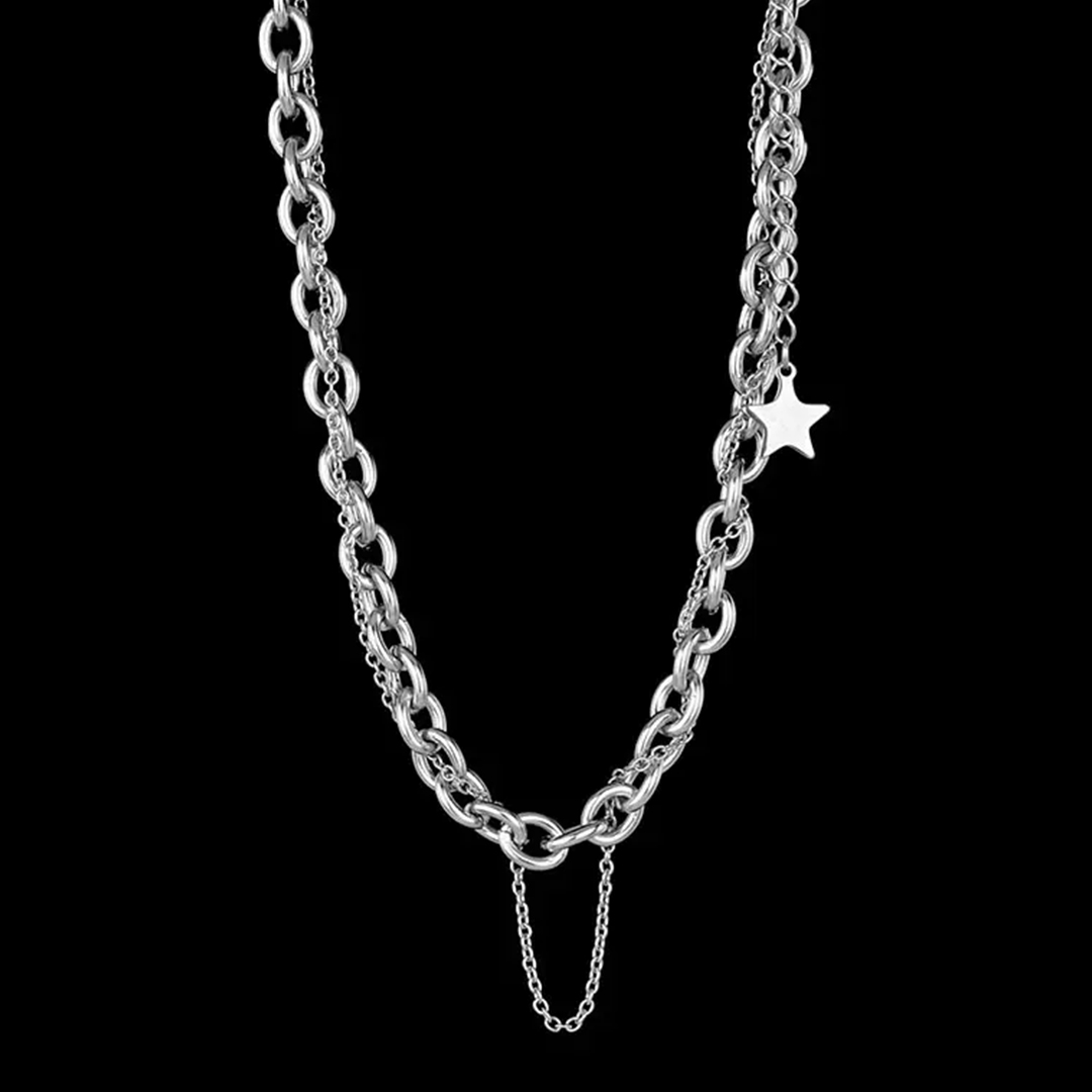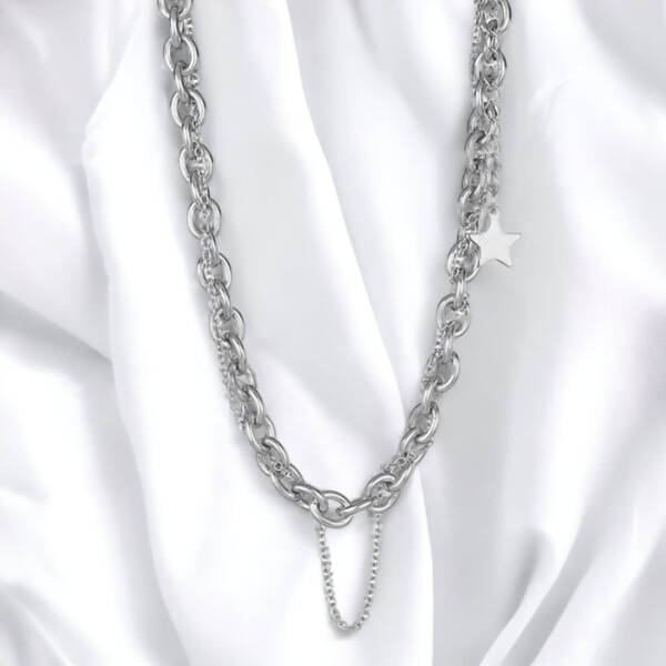 Crafted with precision, this necklace showcases a double Chain Link Necklace with Dazzling Star Charm. The latest in multichain design, it has a delicate chain and a chunky chain with a star hanging from the necklace – adding a touch of glamour and sophistication to any outfit.
