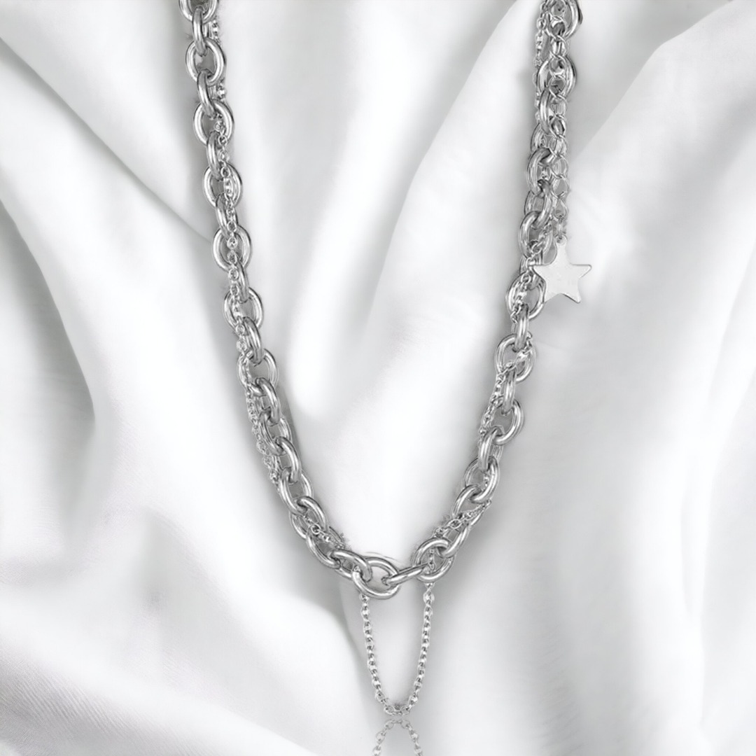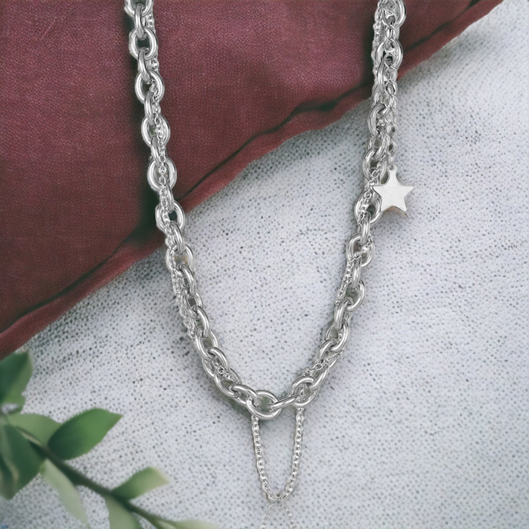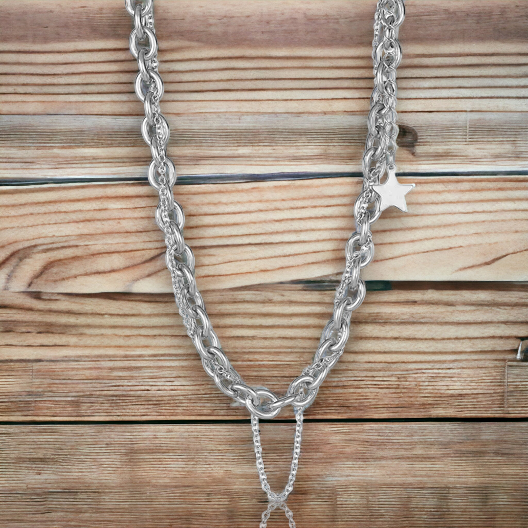 Upgrade your jewelry collection with our exquisite double Chain Link Necklace with Dazzling Star Charm. Tresneria Fashion Jewelry presents a piece that effortlessly combines timeless style and celestial allure.
