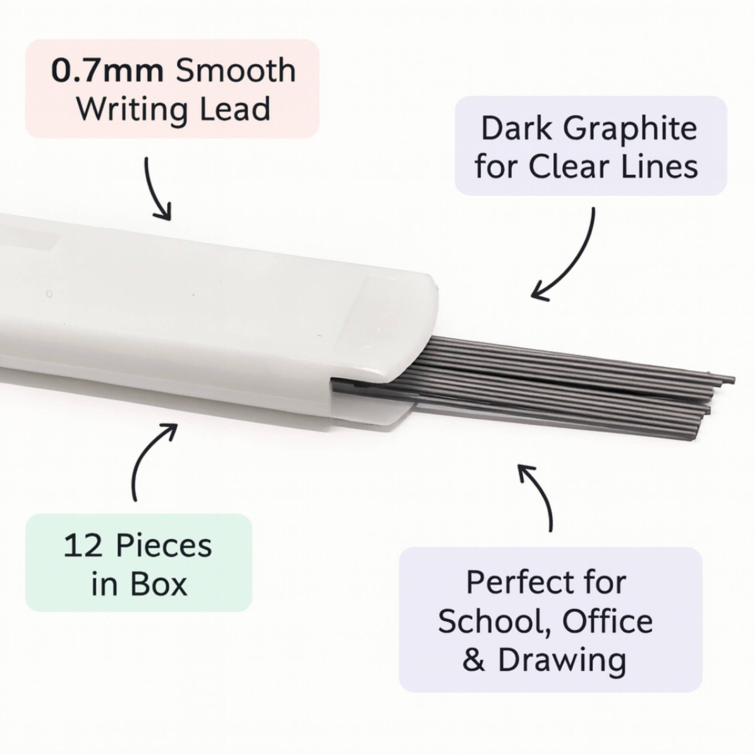 - Smooth Writing Experience – 0.7mm graphite leads ensure clean, precise writing & sketching for school and office.