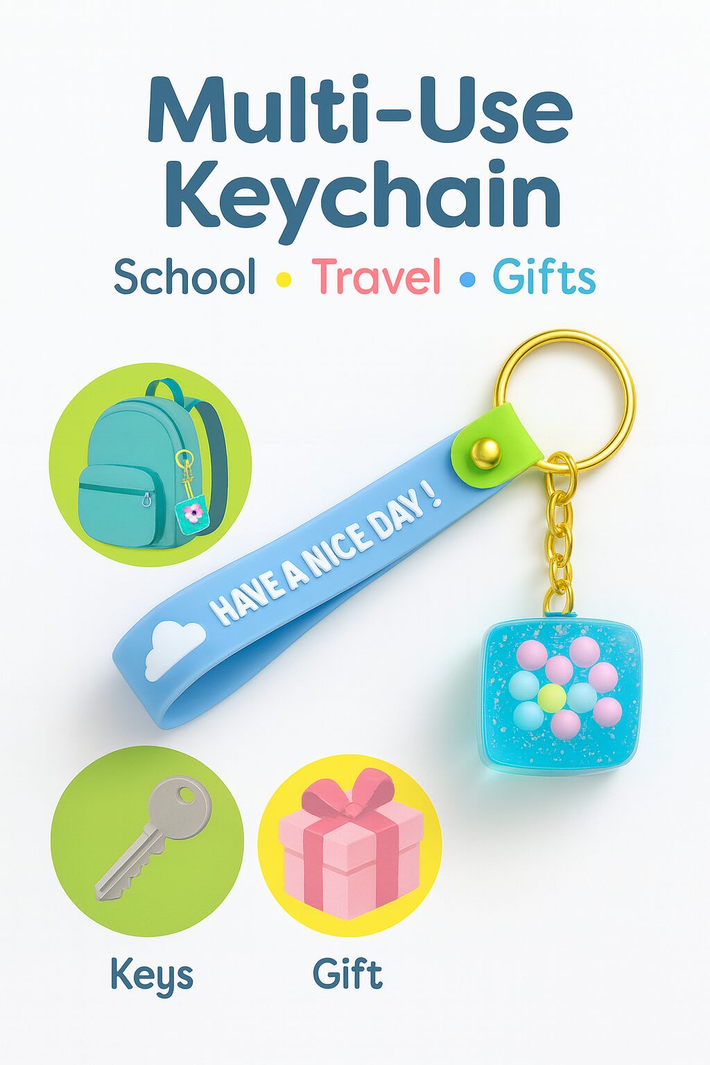 At the heart of this charm is a transparent resin cube filled with soft pastel-colored bubbles, giving it a dreamy, magical look. The bubble cube adds a unique texture and visual appeal that stands out, making it not just a crystal keychain, but a tiny treasure kids will love to carry around.🎁 Great for Gifting – Adorable, Lightweight & Memorable
