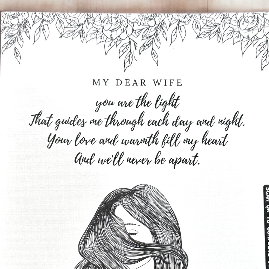 - With a simple scan, your dear wife will be transported to a heartfelt video message, tailor-made exclusively for her. She’ll witness your genuine love and admiration as the words from your heart come alive on the screen before her eyes.