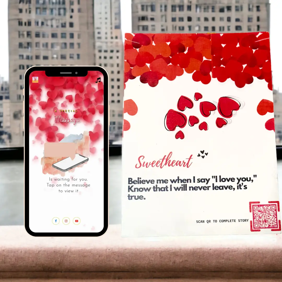 🔸 She then scans the QR code on the Postcard, unveiling the continuation of your specially curated message.