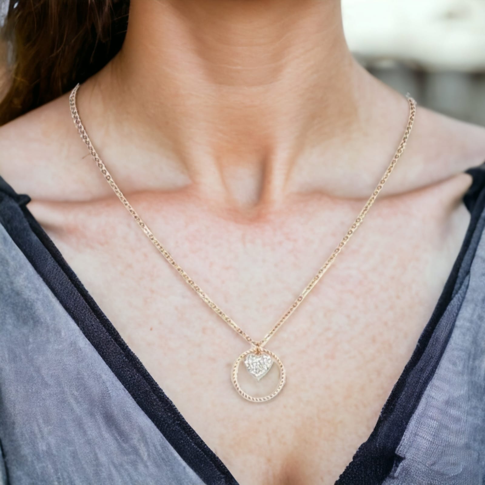 Sparkle with Style: Heart Ring Necklace with Sparkling Stones