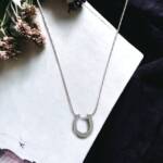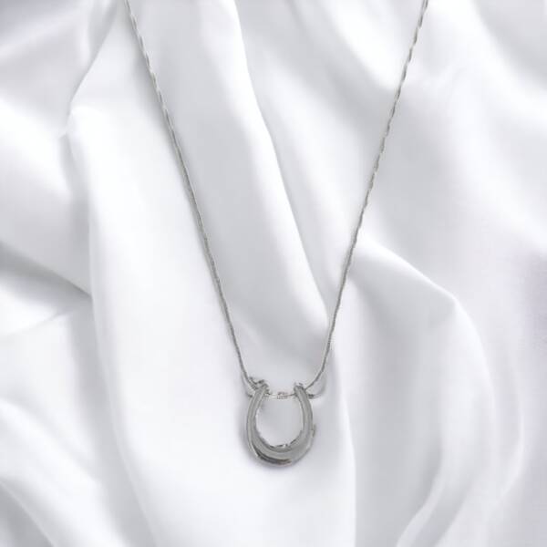 This horseshoe pendant necklace features a sleek and elegant design that effortlessly complements any outfit. The horseshoe pendant is smooth and polished for an elegant look.