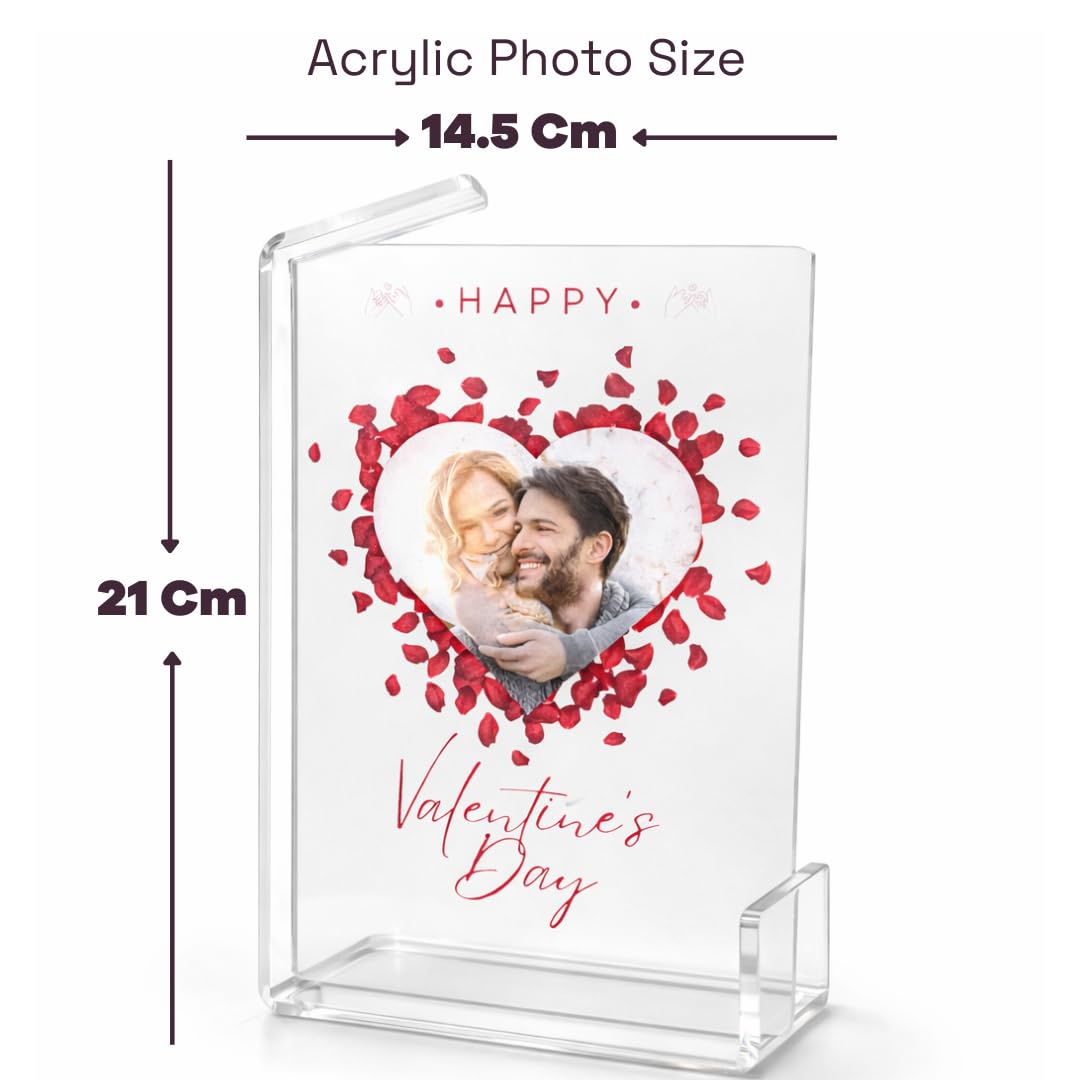Personalized Valentine’s Day Photo Frame with Wooden Stand & Premium Love Gift Bag | love couple photo frame Plaque Gift for Wife, Husband, Girlfriend, Boyfriend | Valentine Gift for Him & Her