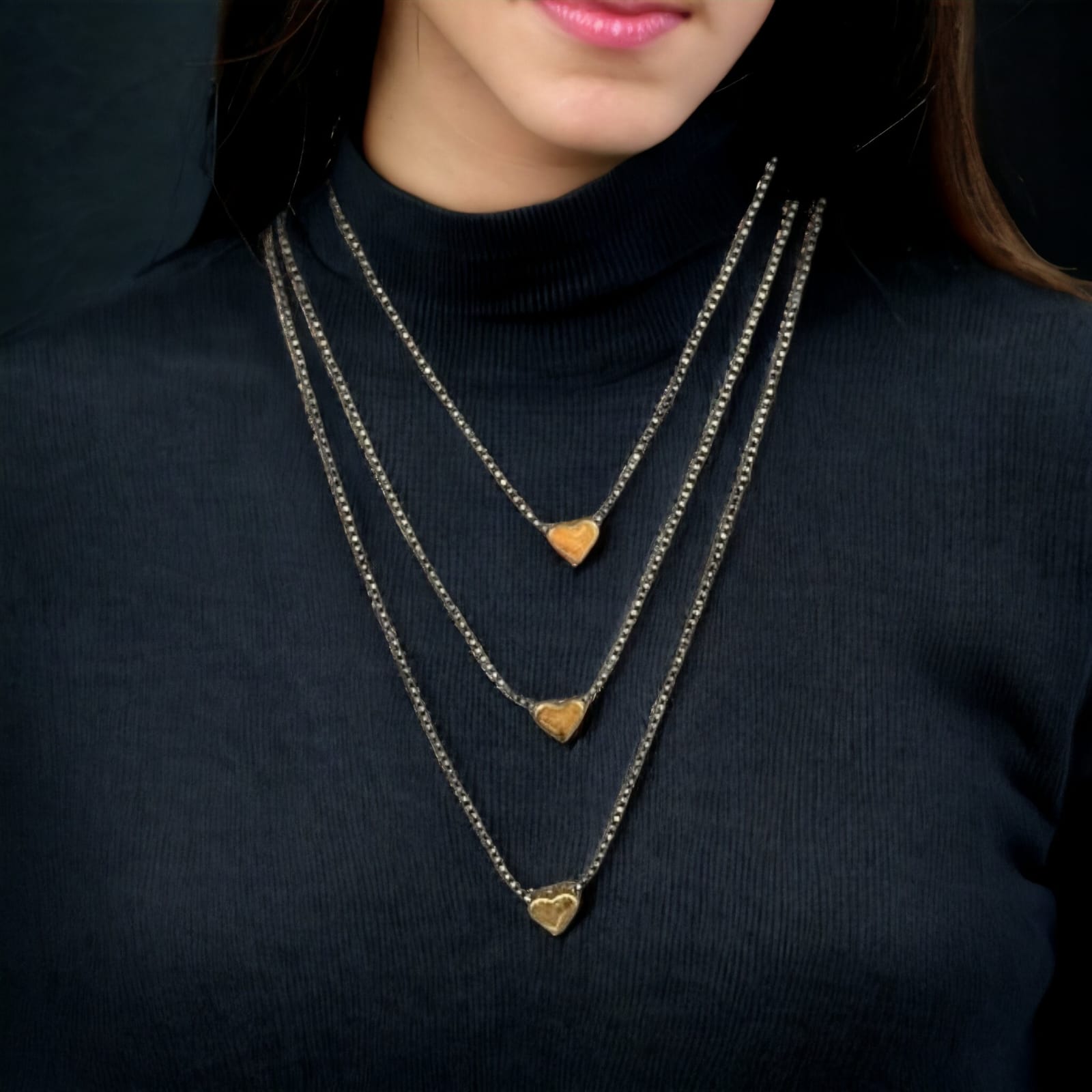 Join the latest trend this season with multilayer chain necklaces. And ours also has cute hearts in golden color.